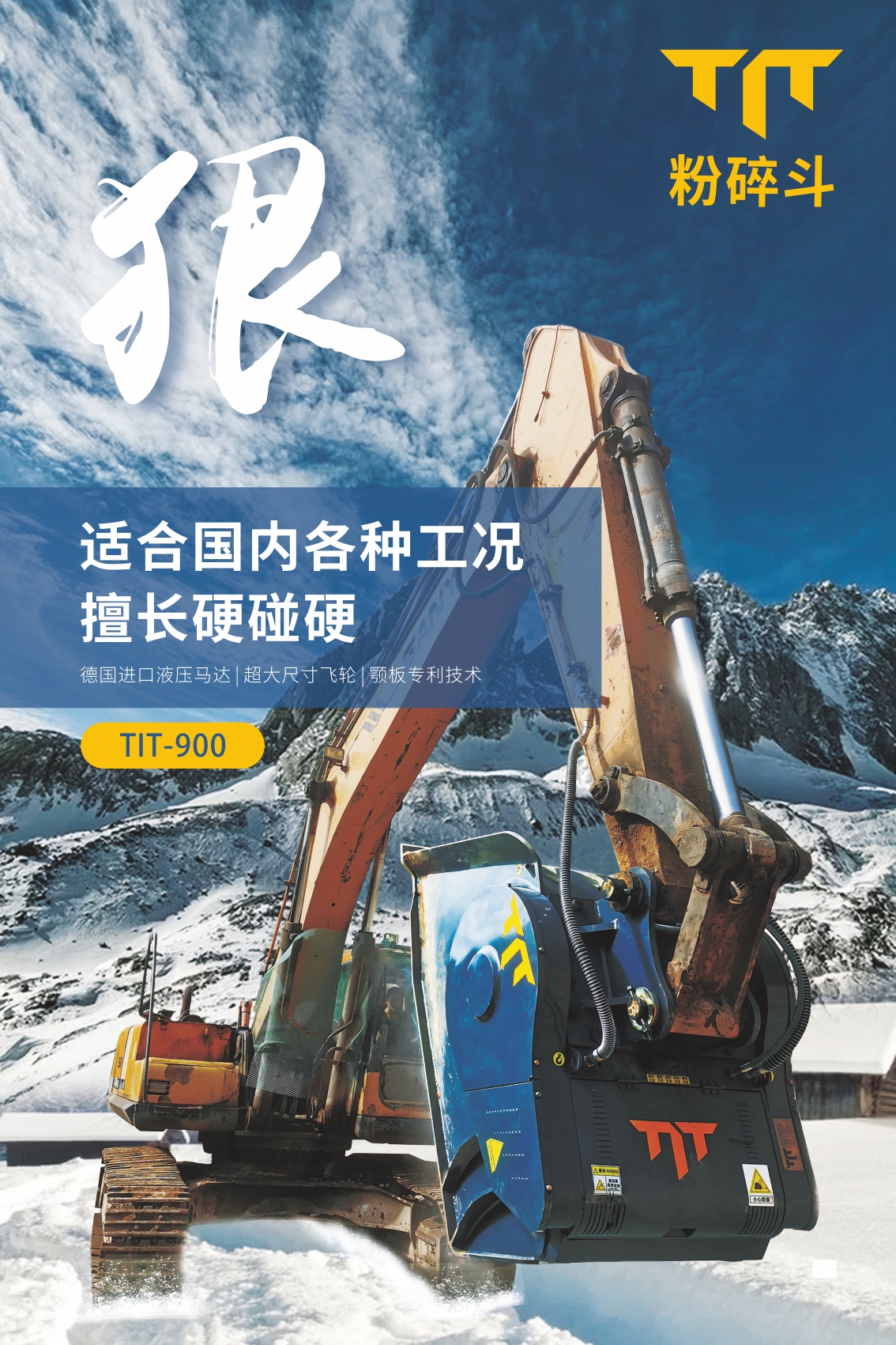 TIT,源自Titan的縮寫,原指古希臘神話中力大無窮的威猛之神,借意本產(chǎn)品剛勁有力,產(chǎn)能高效。TIT粉碎斗,也稱破碎斗,顎式破碎斗,是一款創(chuàng)新型挖掘機(jī)屬具,掛于挖掘機(jī)大臂上,可快速將工程惰性材料破碎成極具價值的工程用料。隨著國內(nèi)基建行業(yè)展,基于市場對經(jīng)濟(jì)化、效率化、環(huán)?;牧系拇罅啃枨?,破碎斗將廣泛應(yīng)用于多種物料破碎場景。 |